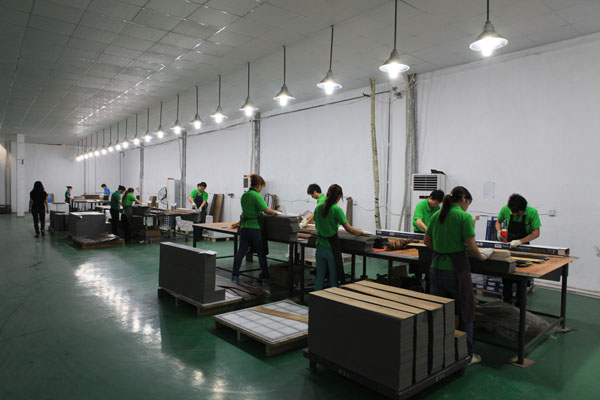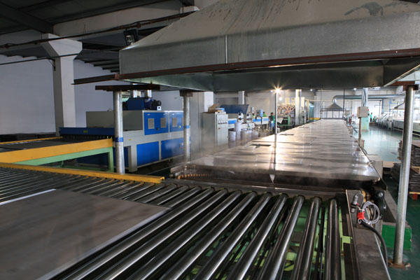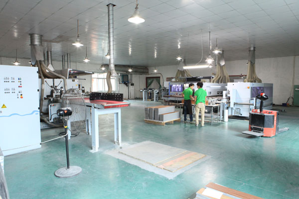 公司目前有4條專業(yè)PVC地板線,主要設(shè)備包括;全自動投料設(shè)備2套、,四輥密煉、開練機(jī)4套,淋膜回火線5條,各種規(guī)格的油壓機(jī)39組、進(jìn)口豪邁開槽線4條,智能化沖床12臺,每天可生產(chǎn)20000㎡左右的各種規(guī)格地板,每月出口近300個(gè)集裝箱貨柜至世界各地。