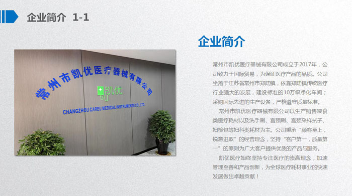 常州市凱優(yōu)醫(yī)療器械有限公司成立于2017年,是一家專注于研究、開發(fā)、生產(chǎn)及銷售喂食類醫(yī)療耗材、醫(yī)用泌尿類耗材、婦科類檢查器械、口罩等產(chǎn)品于一體的現(xiàn)代化企業(yè)。公司坐落于常州市天寧區(qū)鄭陸鎮(zhèn)一天寧高新區(qū)。我們的產(chǎn)品先后通過FDA、CE、ISO等認(rèn)證。 公司成立至今,始終秉承“顧客至上,銳意進(jìn)取”的經(jīng)營理念,先后獲得守合同重信用企業(yè)、國家質(zhì)量服務(wù)信譽(yù)AAA級(jí)企業(yè)等榮譽(yù)。我們擁有經(jīng)驗(yàn)豐富的銷售團(tuán)隊(duì)、各類專業(yè)的技術(shù)人才、熟練操作的員工以及數(shù)臺(tái)國內(nèi)外先進(jìn)的設(shè)備,敦力于為客戶提供最優(yōu)質(zhì)的服務(wù)和支持。我們以先進(jìn)的技術(shù)和科學(xué)的管理為依托,堅(jiān)持實(shí)施品牌戰(zhàn)略,在競(jìng)爭激烈的醫(yī)療器械行業(yè)內(nèi),我們注重追求自主設(shè)計(jì)研發(fā),己累計(jì)推出自主研發(fā)專利十五余項(xiàng)。公司成立短短幾年的時(shí)間已經(jīng)實(shí)現(xiàn)了跨越式發(fā)展,產(chǎn)品遠(yuǎn)銷東南亞、東歐、北美等地區(qū),贏得,國內(nèi)外客戶的一致贊譽(yù)。 長風(fēng)破浪會(huì)有時(shí),直掛云帆濟(jì)滄海。凱優(yōu)醫(yī)療如同翱翔的雄鷹,迎著希望,展翅飛翔。面對(duì)新的機(jī)遇與挑戰(zhàn),凱優(yōu)人定會(huì)憑借工匠精神,持續(xù)改進(jìn)、不斷創(chuàng)新,為企業(yè)在激烈的市場(chǎng)競(jìng)爭中以質(zhì)取勝,確保行業(yè)領(lǐng)先地位,最終實(shí)現(xiàn),成為醫(yī)療耗材行業(yè)引領(lǐng)者的企業(yè)愿景。 凱優(yōu)醫(yī)療,因?yàn)閷W⑺宰吭健?/FONT>