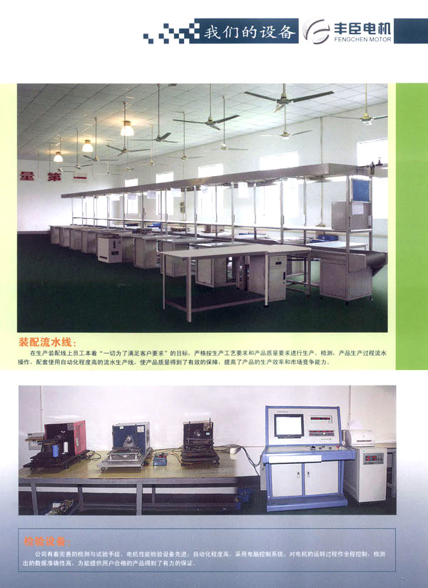 豐臣電機公司專業(yè)生產(chǎn)從YY70-YY145系列感應電動機,年生產(chǎn)能力達150萬臺,年生產(chǎn)總值近1億元人民幣。公司現(xiàn)擁有員工300余人,其中高級工程師、高級技師、高級管理人員及其它專業(yè)技術人員40余人;擁有先進的生產(chǎn)能力、企業(yè)管理能力、技術開發(fā)能力、質量管理經(jīng)驗;具有各類專業(yè)生產(chǎn)設備25臺(套),專業(yè)檢測設備器具50余套。