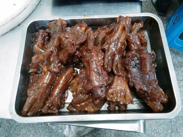 常州市武進(jìn)區(qū)嘉澤蔣師傅鹵菜店經(jīng)營已有30多年,本產(chǎn)品采用祖?zhèn)髑旯欧郊右钥茖W(xué)營養(yǎng)的獨特鹵料配方、加入30多種名貴香料和中藥材秘制而成,達(dá)到色、香、味、形的俱加效果。做出來的產(chǎn)品不僅口感鮮美、香盈撲鼻、而且色澤誘人!肉感細(xì)膩、韌勁適度、有嚼勁、香辣入骨、不加塞牙縫,食用后具有特別的回味宇香,是極好的送禮佳品。