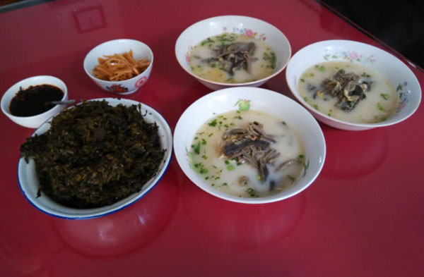 歡迎來孟河老街的八斤面館吃孟河鱔絲面! 這孟河鱔絲面據(jù)說是康熙年間傳下來的,算起來已有三百多年的歷史了,要比常州小籠饅頭、大麻糕一百多年歷史悠久得多。在孟河一帶,做孟河鱔絲面的面館有許多家,就像常州做小籠饅頭、大麻糕的店家一樣的多。 “八斤面館”的孟河鱔絲面是有傳承的,是孟河兩家比較正宗的孟河鱔絲面館之一。孟河鱔絲面制作技藝曾列入新北區(qū)非物質(zhì)文化遺產(chǎn)調(diào)查,調(diào)查時“八斤面館”的老板巢八斤也提供了有關(guān)資料。 這家小面館取名為“八斤面館”,是因?yàn)槔习逍∶徒邪私铩W哌M(jìn)這片小小的面館,只有兩張八仙桌。只有臺子上的玻璃臺刻還有點(diǎn)七十年代的特征,其它地方還都是五、六十年代鄉(xiāng)下家里頭的風(fēng)格。 老板巢八斤祖上三輩都是廚師,現(xiàn)在兒子也在上海做廚師。老板娘原來是上海知青,上山下鄉(xiāng)時投親靠友來到孟河,后來在孟河與巢八斤結(jié)婚,成家立業(yè)。與在支青大返城時放棄回大上海的機(jī)會,與老公開了這個“八斤面館”,用老板娘的話說是"做做白相相的",所以守著這片小店,只想把鱔絲面做好。也不想做大,也不想到常州到上海去開大一點(diǎn)的面館。 這孟河鱔絲面是用一斤有十幾條的“筆梗黃鱔”,先用開水把黃鱔燙熟,然后用竹刀批下二條黃鱔肉,除去骨頭肚腸,切成段后入油鍋里炸酥,再用白湯烹制成為面澆頭。而面湯是用鱔魚骨頭、豬骨等用大鍋猛火煮上三、四個鐘頭,成為一鍋濃濃的白湯,再進(jìn)行調(diào)味。面條也是用細(xì)細(xì)的銀絲面,大碗寬湯,鮮香味濃,沒有一丁點(diǎn)鱔魚的土腥氣,再加上白胡椒粉,吃到嘴里全身舒坦。