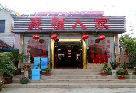 口福 一手的新鮮食材 聚福人家的老板張玉良是土生土長的太滆人,從小就跟隨父母的漁船在太湖上搖曳長大。憑著對太湖水產的熟識與一番鄉(xiāng)戀,他畢業(yè)后留在了這里,進入了常州水產公司太滆銀魚分公司,繼續(xù)與這里的魚魚蝦蝦打交道。多年的矜矜業(yè)業(yè),他漸漸對太滆的漁業(yè)熟門熟路,于是便離開水產公司,自己開始做起了水產生意,10艘大漁船一年四季為其供應最新鮮的魚蝦,有一手的新鮮貨源做后盾,他萌生開飯店的想法。 2008年,聚福人家的前身聚福樓飯店開張了。8年來,張玉良始終堅持親自為飯店挑選新鮮的食材,顧客吃得開心、吃得健康,他就放心了。 聚福人家的菜品不僅食材新鮮,而且豐富多樣,味道一流。讓家鄉(xiāng)的味道走出去,讓外面的味道走進來