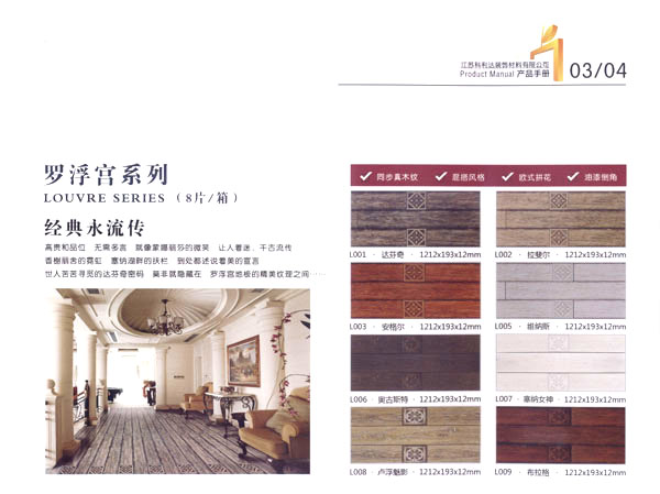 “科利達(dá)”品牌(央視上榜品牌)與四屆金馬金像影帝——梁家輝攜手合作,曾獲得國(guó)家免檢產(chǎn)品、江蘇名牌等眾多榮譽(yù)稱號(hào),還被評(píng)為中國(guó)木地板行業(yè)最具市場(chǎng)影響力的優(yōu)秀品牌、“中國(guó)最具競(jìng)爭(zhēng)力地板品牌”。同時(shí),科利達(dá)商標(biāo)已在德國(guó)、澳大利亞等全球諸多國(guó)家正式注冊(cè),科利達(dá)的產(chǎn)品不僅在國(guó)內(nèi)建立了500多家專業(yè)服務(wù)機(jī)構(gòu),還遠(yuǎn)銷歐美、東南亞、俄羅斯、印度、土耳其、哥倫比亞等五十多個(gè)國(guó)家和地區(qū),出口總量超過8000萬平方米,在海內(nèi)外享有廣泛的影響和良好贊譽(yù)?评_(dá)把“引領(lǐng)潮流,美化世界”作為自己義不容辭的歷史使命!