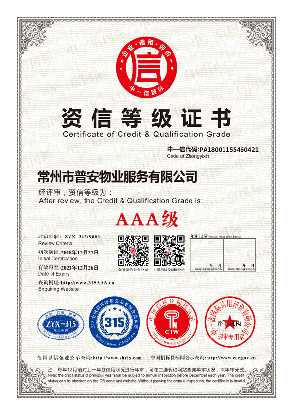 常州市普安物業(yè)服務(wù)有限公司成立于2014年6月,注冊資金500萬元人民幣,原公司名稱“常州市九合物業(yè)服務(wù)有限公司”具有國家三級物業(yè)服務(wù)資質(zhì)的物業(yè)管理服務(wù)企業(yè),公司本著“業(yè)主至上、服務(wù)第一,陽光服務(wù)、精品管理”的服務(wù)理念,精心打造具有普安物業(yè)特色的專業(yè)管理品牌。