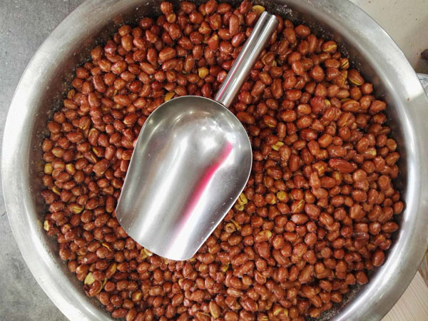 湖塘花東街上的“石頭炒貨店”是20多年的老字號(hào)了。上個(gè)世紀(jì)90年代,二十郎當(dāng)歲的“石頭”一一石愛軍從徐州來到武進(jìn),就在這條街上擺了個(gè)炒貨攤!皫灼椒矫椎男〉?cái),邊上架個(gè)大鐵鍋,炒出的瓜子、花生、蠶豆,鋪在竹篾上篩過、冷卻后就可以賣了!笔瘣圮娀貞洠址秽徖锩爸盏膰(yán)寒,擠在地?cái)偳皣L著剛出鍋的瓜子的場(chǎng)景,還歷歷在目。20多年過去了,鄰居們都成了最熟悉的親人,從年輕姑娘到抱著孫子的老人,大家還是最愛吃石頭炒的瓜子。而炒貨店的店面也擴(kuò)大了,并且在湖塘另開了多家分店。 生意最好的還是花東街上的老店。不大的店面,被一袋袋瓜子、花生、蠶豆、核桃堆得滿滿的,空氣里也滿滿都是堅(jiān)果的香氣。超大瓜子唇齒留香,去皮瓜子鮮香入昧,南瓜子皮薄肉厚,還有開心果、手剝松子、小油果、核桃、碧根果、小黃豆,以及炒米糕、蛋卷、麻松條、紫薯干、地瓜干、山芋片、鍋巴、芝麻糖、山楂、麻花、葡萄干….這么多美昧都是老板親手制作。愛吃點(diǎn)什么,就用一 長(zhǎng)柄勺鏟點(diǎn)兒什么,最質(zhì)樸簡(jiǎn)單的包裝袋里,裝著的是屬于這條老街居民記憶里的味道,穿過幾十年的時(shí)光,仍然鮮活生動(dòng)地銘刻在每一個(gè)人的里。 “少東家”石榮沖就是在這個(gè)老店、這條老街長(zhǎng)大的。他說目前自己炒瓜子的技藝還沒到火候,還在跟著父親學(xué)習(xí)的階段!碧暨x原料、炒制工序,每一步都有學(xué)問在里頭!蹦玫陜(nèi)的銷售冠軍“內(nèi)蒙大瓜子”來說,這種來自內(nèi)蒙、經(jīng)過充足日照的葵花子每顆長(zhǎng)度近2厘米,個(gè)頭特別大,也十分飽滿。拈一顆大瓜子,就連嗑起來的聲音也分外清脆。外皮很容易與內(nèi)仁剝離,碩大的瓜子仁口感十分香脆,與別家作料用得很足、吃起來特別鮮咸的瓜子不同,這種大瓜子更注重烘托原昧,淡淡的咸昧在舌尖掠過,剩余的都是屬于瓜子的天然香甜。