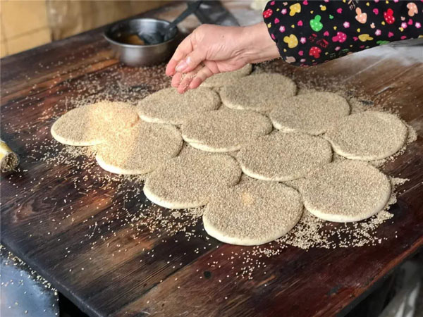 常州大麻糕已經(jīng)有150多年的歷史,常武各地的麻糕師傅、麻糕店數(shù)不勝數(shù),但今天小編要帶大家去的是一家隱藏在背街小巷里,至今仍保持著傳統(tǒng)手工制法的麻糕店。 沈正昌麻糕店位于遙觀鎮(zhèn)東街、國(guó)寧寺旁,雖然店門(mén)口連個(gè)招牌都沒(méi)有,卻不妨礙四面八方的食客慕名而來(lái),大伙看中的正是這些純手工制作,原汁原味的大麻糕。如今的店主沈國(guó)平已經(jīng)是沈家第四代做麻糕的傳人了。 秉承著爺爺那輩傳下來(lái)的手藝,他們制作的麻糕塊大實(shí)誠(chéng),用料講究,口感酥軟,深受四周鄉(xiāng)鄰的歡迎!拔覀冞是老法,酥是生板油身擦的,餡里也是生板油摻糖,是真的綠色產(chǎn)品,沒(méi)有添加劑,沒(méi)有防腐劑,也不用甜蜜素,都是真家伙。” 每天凌晨一兩點(diǎn)鐘,沈國(guó)平就要去采買(mǎi)當(dāng)天最新鮮的豬板油,回來(lái)清理干凈,和上面粉攪拌均勻,制成面團(tuán)。麻糕的制作主要由沈國(guó)平妻子和兩個(gè)姊妹來(lái)完成。揉面、搓胚子、配油酥,按餡心、搟均勻,整個(gè)過(guò)程行云流水,連貫無(wú)比。 當(dāng)爐火燒得正旺,溫度能高達(dá)近300度,沈國(guó)平就上場(chǎng)了,赤手空拳,一撈一貼,一秒鐘的功夫,就把麻糕貼到了桶壁上。不過(guò)幾分鐘的功夫,麻糕就出爐了。經(jīng)過(guò)炭火爐子烤出來(lái)的,比一些電烤爐烤出的更香、更脆。