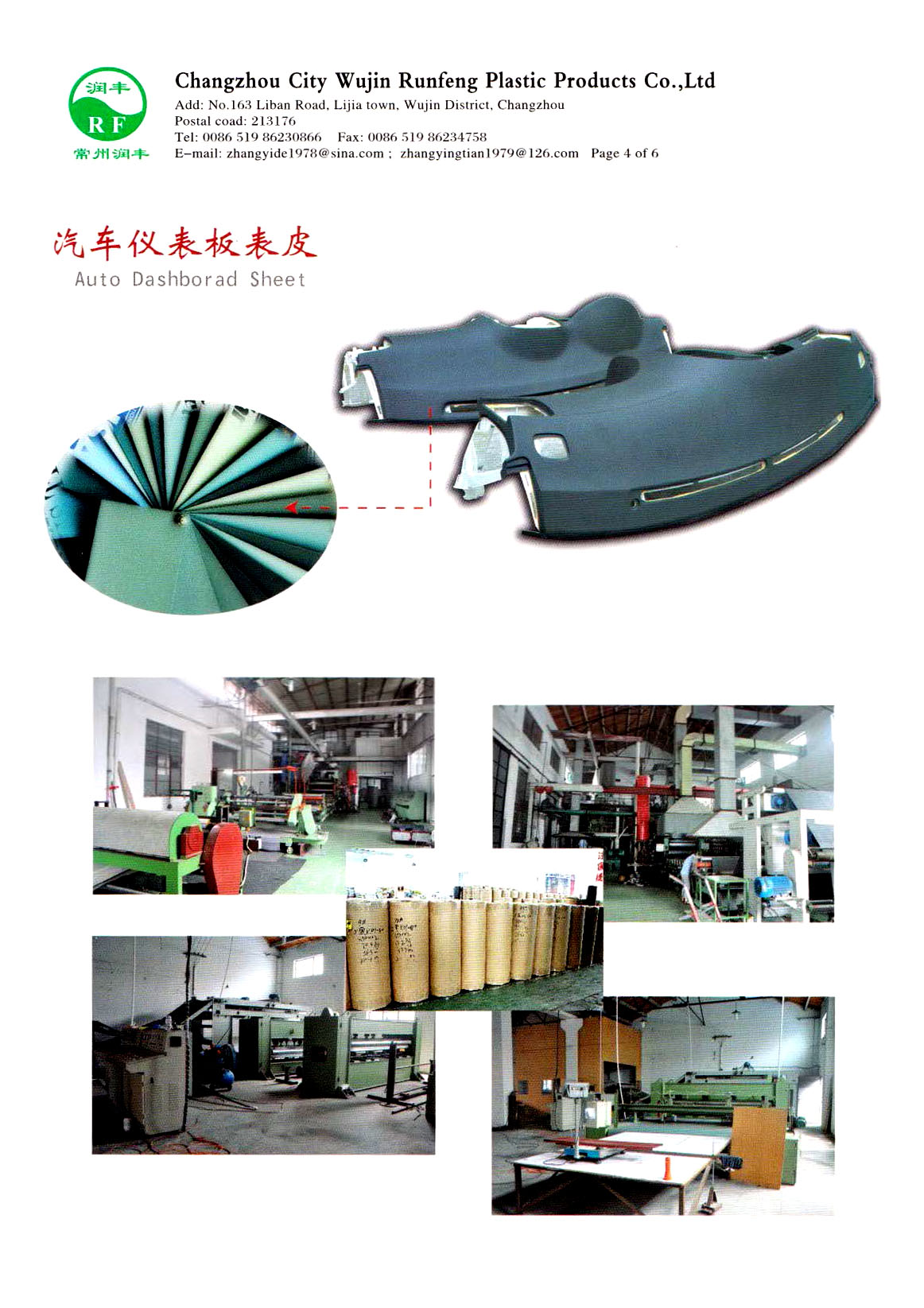 常州市武進(jìn)潤豐塑料制品有限公司地處風(fēng)景美麗經(jīng)濟(jì)發(fā)達(dá)的長江三角洲常州市東郊禮嘉鎮(zhèn),公司占地面積約8000平方米,且地理位置優(yōu)越,是中外客商常涉之地。 本公司專業(yè)生產(chǎn)汽車儀板軟化表皮、PVC門護(hù)板表皮、PVC復(fù)合制品、壓延薄膜制品,(塑料制品除醫(yī)用塑料制品),車輛零部件,機(jī)械電器零部件,電子元件,沖壓件制造,加工無妨制品,玻纖氈(GFP板),麻氈板等。本公司的產(chǎn)品在國內(nèi)一線乘用車上廣泛使用。產(chǎn)品通過國家汽車質(zhì)量監(jiān)督檢驗(yàn)中心檢測,并取得了各種證書,如亞瑟國際認(rèn)證;ISO/TS1694:2009等。 本公司技術(shù)力量雄厚,生產(chǎn)設(shè)備先進(jìn)。多年來,建立了較完善的質(zhì)量管理體系,以先進(jìn)的檢測技術(shù),優(yōu)質(zhì)的服務(wù)態(tài)度,向客戶提供最優(yōu)秀的產(chǎn)品,在同行中享有良好的聲譽(yù)。 歡迎新老客戶來公司指導(dǎo),洽談,合作。