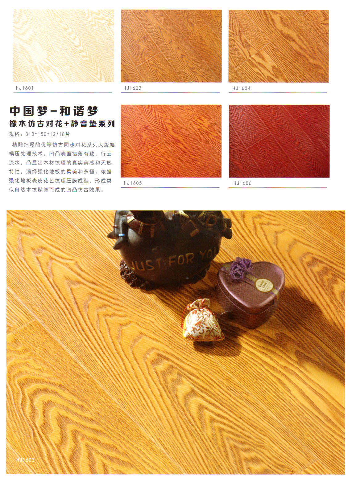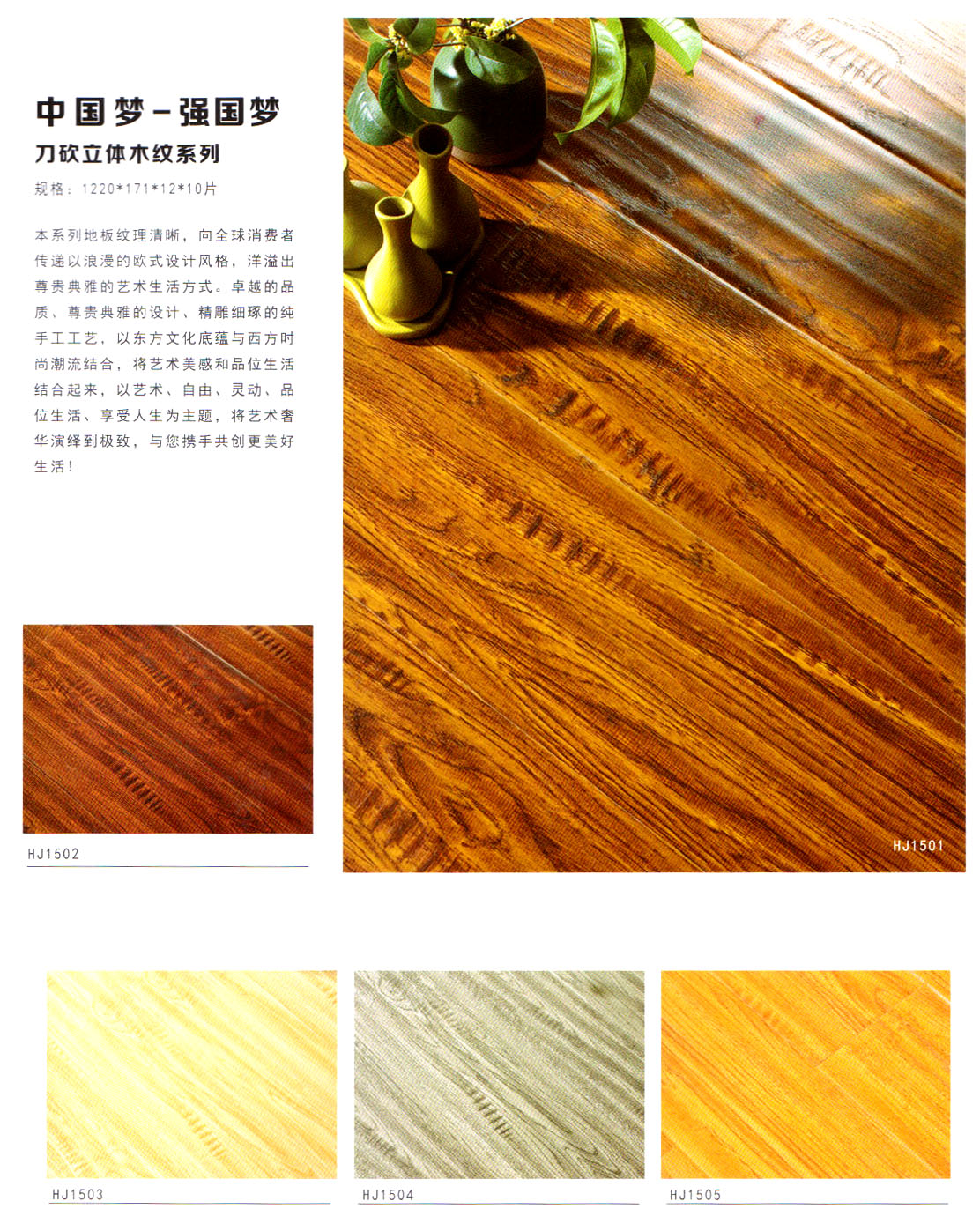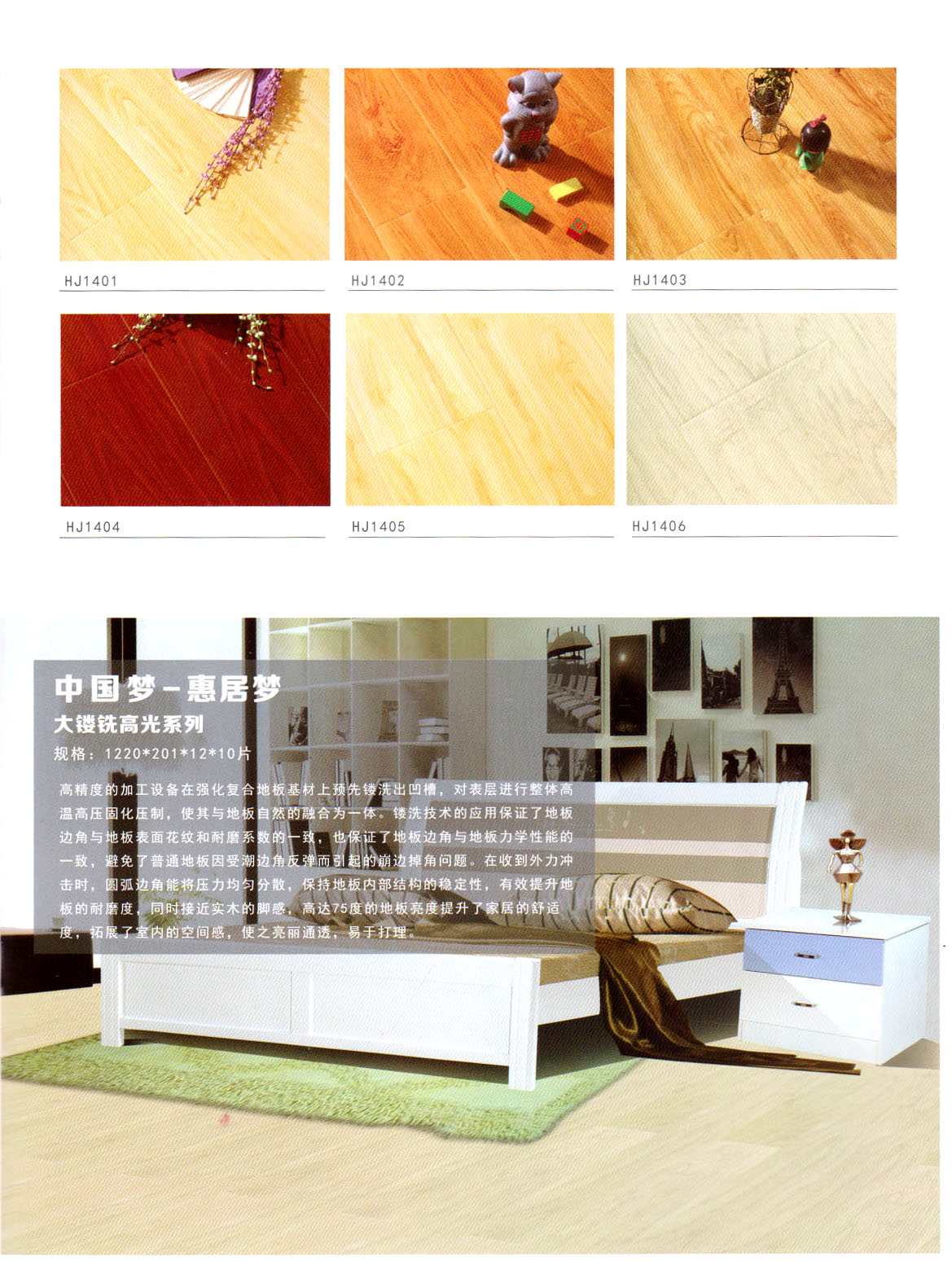 目前我們主要經(jīng)營“惠居”、  “靈盛”牌木質(zhì)強(qiáng)化地板,現(xiàn)在已經(jīng)開發(fā)出水晶面、羽絲面、浮雕面、立體刀砍紋、手抓紋、4v仿實(shí)木、金剛淋漆面、模壓面、橡木真木紋、防水系列等多個(gè)系列產(chǎn)品,涵蓋了市場上所出現(xiàn)的所有產(chǎn)品系列!