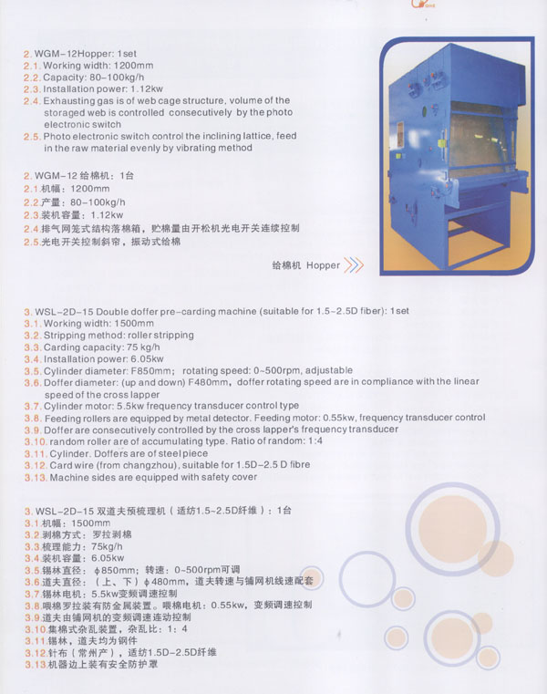 常州市祺科機(jī)械制造有限公司暨常州市武進(jìn)無(wú)紡機(jī)械設(shè)備有限公司多年來(lái)致力于各種機(jī)械產(chǎn)品的研制和開(kāi)發(fā),1990年始即成為我國(guó)較早生產(chǎn)無(wú)紡機(jī)械設(shè)備和制品的專業(yè)廠家,技術(shù)力量雄厚,公司生產(chǎn)的成套設(shè)備有:浸膠、熱軋、針刺、無(wú)膠棉、噴膠棉等傳統(tǒng)無(wú)紡布生產(chǎn)線。新近開(kāi)發(fā)了高速雜亂梳理機(jī),梳理木漿復(fù)合水刺生產(chǎn)線,氣流純棉水刺生產(chǎn)線等。