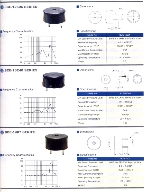 本公司生產(chǎn)的蜂鳴器結(jié)構(gòu)緊密,材質(zhì)輕,功耗低,質(zhì)量可靠,使用方便,價(jià)格合理,采用最新技術(shù)電子元件。廣泛應(yīng)用于打印機(jī)、電話、定時(shí)器、尋呼機(jī)、洗衣機(jī)、取款機(jī)、報(bào)警器、電腦終端機(jī)、復(fù)印機(jī)、電唱機(jī)、汽車及摩托車電子設(shè)備、空調(diào)設(shè)備、萬用表、遙控裝置、各種安全裝置以及便攜或電池式迷你型裝置。
