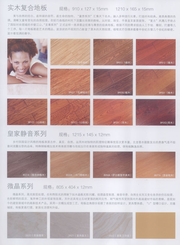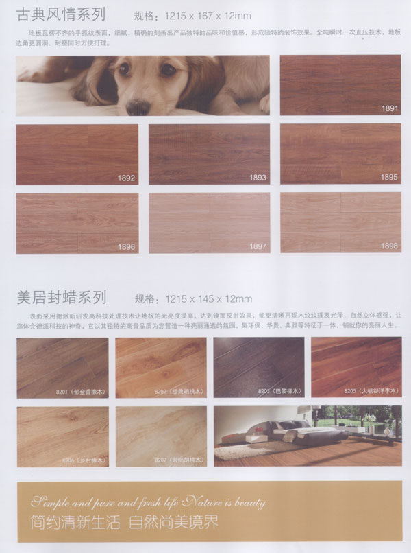 公司生產(chǎn)的地板所選用的材料均為進口或國內上等材料。嚴格的入廠檢驗,不使任何不合格的原材料流入生產(chǎn)環(huán)節(jié),優(yōu)異的生產(chǎn)加工工藝使原材料和精良設備的優(yōu)勢發(fā)揮至及致;嚴格的質量管理體系更使每一流轉環(huán)節(jié)的產(chǎn)品品質一流。每塊出廠的地板都符合比國標更嚴格品質標準。