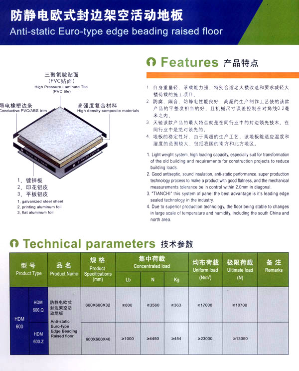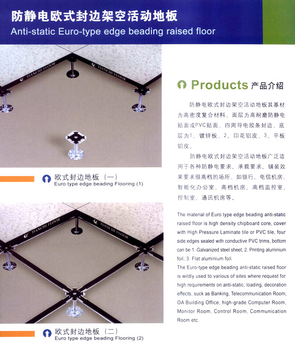 公司專業(yè)生產(chǎn)“天馳”系列活動地板,符合國家安全要求,種類完備多樣,其中防靜電瓷質(zhì)高架通路地板除具有普通瓷質(zhì)的裝飾和實用性外,其耐磨,防水,防火功能優(yōu)于其他同類產(chǎn)品,深受客戶歡迎。