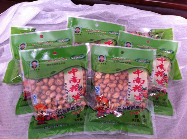 正宗的中南花生為綠色包裝,包裝上有“禮河中南”花生創(chuàng)始人蔣中南先生的頭像以及QS生產(chǎn)許可標志,請廣大客戶認準購買,以防假冒。