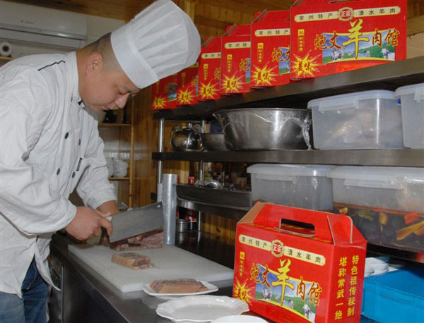 談家的羊肉館用的全是散養(yǎng)了一兩年的公山羊,公羊的收購(gòu)價(jià)比母羊要貴出1/3,但他家還是堅(jiān)持全部選用未經(jīng)閹割過的公羊,原因是公羊的肌肉結(jié)實(shí),吃起來更香。