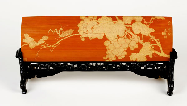 徐敏,一九七四年生于江蘇常州,擅長山水油畫。師從竹刻家范遙青研習竹刻至今有二十余載。其作品受到竹刻權(quán)威鑒賞家王世襄認可,并親筆為她題字褒獎,F(xiàn)為常州市非物質(zhì)文化遺產(chǎn)傳承人。
