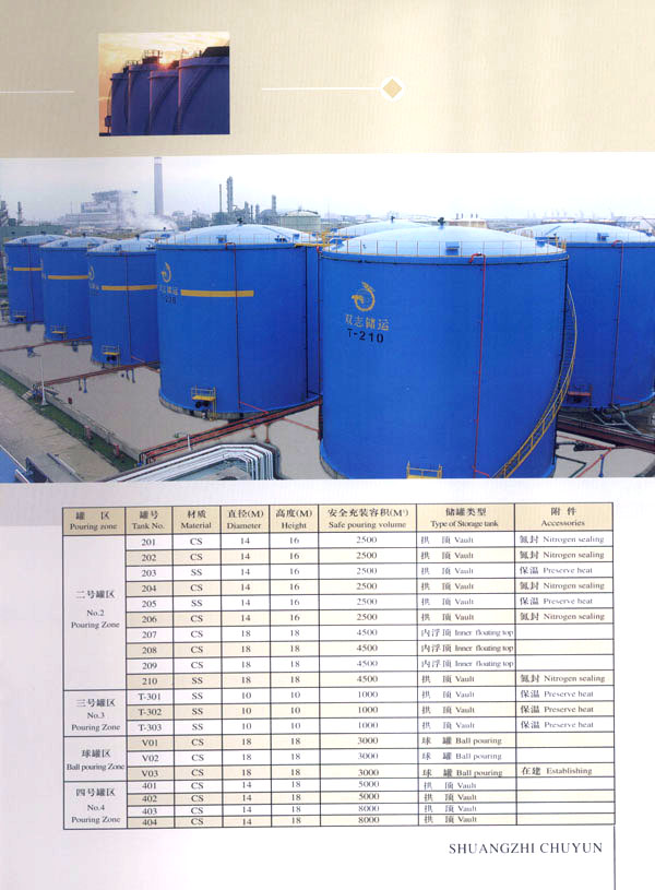 常州市雙志石油化工儲運有限公司,位于國家一類對外開放口岸常州石化港區(qū),是一家專業(yè)石油化工產(chǎn)品倉儲公司。罐區(qū)占地78畝,建有各種化工儲罐30座(總庫容為10萬m3)及相應的倉儲配套設施。經(jīng)海關批準,設有海關保稅庫和海關監(jiān)管庫。公司專業(yè)從事石油化工產(chǎn)品倉儲、中轉、分撥、灌裝業(yè)務,以及進出口貨物的代理報關、接受金融機構委托提供動產(chǎn)質(zhì)押監(jiān)管服務。