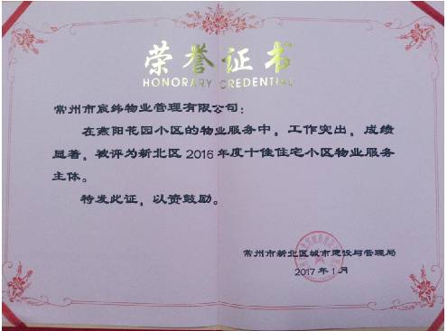 常州市宸緯物業(yè)管理有限公司成立于 2005 年,獲得國家二級資質(zhì),是常州市物業(yè)管理協(xié)會理事單位,并通過ISO9001:2008 質(zhì)量管理體系、ISO14001:2004 環(huán)境管理體系、OHSAS18001:2007 職業(yè)健康安全管理體系,三標(biāo)一體認(rèn)證,獲得AAA級企業(yè)資質(zhì)信用等級、AAA級重合同守信用企業(yè)、AAA級質(zhì)量服務(wù)信譽企業(yè)、AAA級誠信經(jīng)營示范單位。 常州市宸緯物業(yè)管理有限公司更是一家適應(yīng)市場需求,積極參與市場經(jīng)濟競爭的高品質(zhì)、高效率、專業(yè)化的物業(yè)管理企業(yè)。公司在物業(yè)管理服務(wù)上導(dǎo)入 ISO9001:2008 質(zhì)量管理體系,建立了一整套適應(yīng)公司發(fā)展的自成體系、行之有效的經(jīng)營管理方法,在市場中堅持以品牌發(fā)展戰(zhàn)略為目標(biāo)方針,目前公司所管理的項目共計 25 個物業(yè)類型,包括了住宅小區(qū)、商務(wù)辦公樓、學(xué)校、工業(yè)園區(qū)、廠區(qū)等。 憑借在常州物業(yè)管理行業(yè)多年的豐富經(jīng)驗和經(jīng)營理念,公司將通過推行多元化的服務(wù)內(nèi)容,及互聯(lián)網(wǎng)+的服務(wù)模式,努力為每一位客戶提供舒適、高效的服務(wù)體驗。公司始終遵循“讓客戶滿意是我們永遠的追求”,不斷探索,勇于創(chuàng)新,隨著經(jīng)營理念和管理經(jīng)驗日趨成熟,公司將以市場和客戶的需要為導(dǎo)向,憑借自身的人才、技術(shù)、資本、管理等優(yōu)勢,精誠服務(wù),不斷超越客戶的需求,推進物業(yè)管理事業(yè)的發(fā)展。