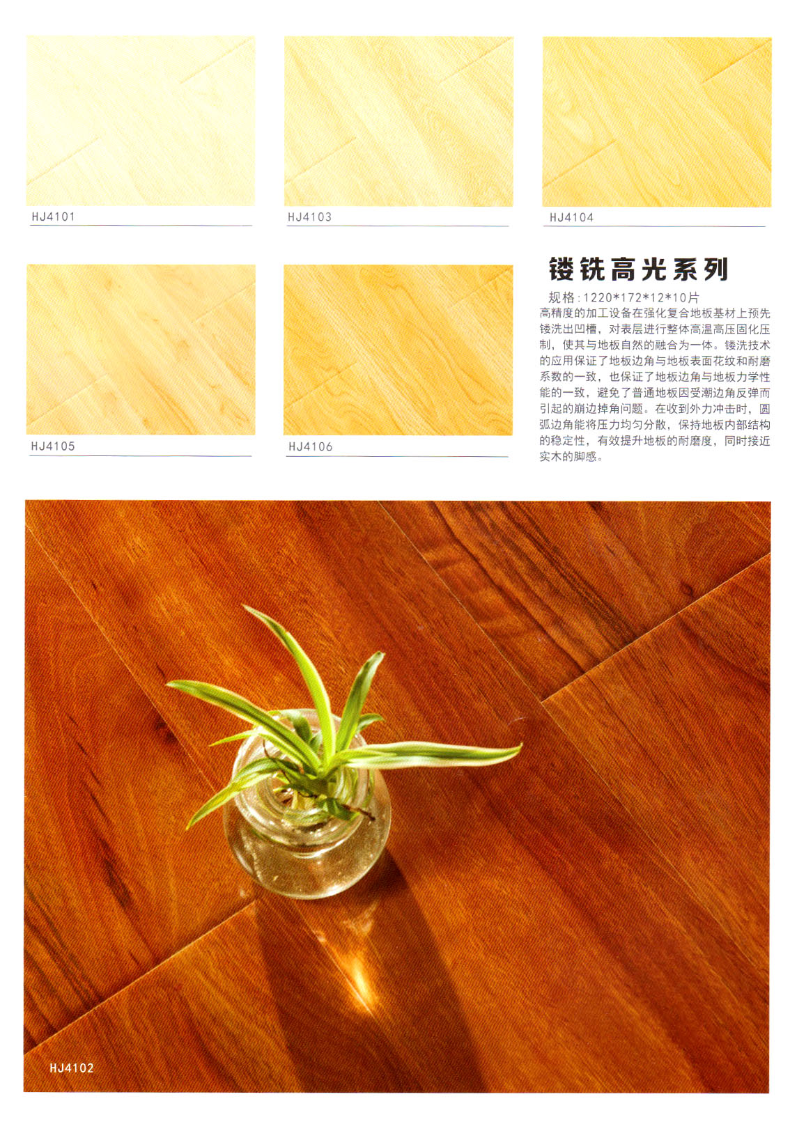 目前我們主要經(jīng)營“惠居”、  “靈盛”牌木質(zhì)強化地板,現(xiàn)在已經(jīng)開發(fā)出水晶面、羽絲面、浮雕面、立體刀砍紋、手抓紋、4v仿實木、金剛淋漆面、模壓面、橡木真木紋、防水系列等多個系列產(chǎn)品,涵蓋了市場上所出現(xiàn)的所有產(chǎn)品系列!