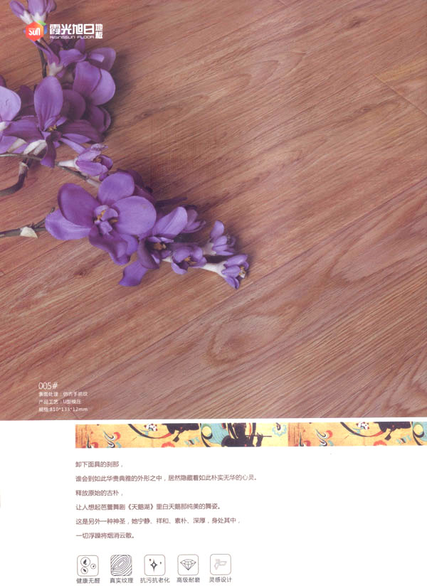 品牌保證,質(zhì)量放心 公司旗下“霞光.旭日”品牌地板系列由旭日皇家、旭日經(jīng)典、旭日戀家、至尊奢華、巧奪天工、水晶陶瓷等幾個(gè)系列構(gòu)成,配有專職質(zhì)量檢驗(yàn)人員,嚴(yán)把產(chǎn)品質(zhì)量關(guān),不斷完善產(chǎn)品質(zhì)量體系、監(jiān)控管理體系。公司對(duì)客戶需求全面、科學(xué)、準(zhǔn)確地把握,確保對(duì)客戶市場(chǎng)適時(shí)高效反應(yīng)。一流的設(shè)備、精心的選材、完美的工藝以及對(duì)產(chǎn)品品味不倦的追求,令奔公司產(chǎn)品獨(dú)樹一幟。