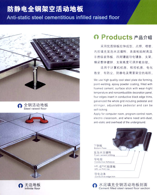 常州天馳活動地板有限公司始創(chuàng)于2010年,原身是常州市武進(jìn)區(qū)橫林天馳機(jī)房地板廠,地處橫林工業(yè)園區(qū),交通便捷。 公司主要生產(chǎn)和銷售各種機(jī)房地板,自創(chuàng)立以來,以品質(zhì)第一,信譽(yù)第一,服務(wù)第一的理念堅(jiān)持做全國最優(yōu)質(zhì)量。 防靜電高架活動地板是計(jì)算機(jī)行業(yè)發(fā)展起來的新型鋪地材料,隔離了潮氣,靜電灰塵。最重要的是解決了綜合布線問題,無需預(yù)埋管線,可隨時(shí)拆卸,搬移,保證了資訊設(shè)備完整的優(yōu)點(diǎn),適應(yīng)了智能化樓宇中信息自動化技術(shù)對所處環(huán)境的特定要求,避免了廣大客戶的雙重投資,使現(xiàn)代化辦公程度更加高效,辦公場所更加舒適。 公司專業(yè)生產(chǎn)“天馳”系列活動地板,符合國家安全要求,種類完備多樣,其中防靜電瓷質(zhì)高架通路地板除具有普通瓷質(zhì)的裝飾和實(shí)用性外,其耐磨,防水,防火功能優(yōu)于其他同類產(chǎn)品,深受客戶歡迎。 公司大力發(fā)展國內(nèi)外銷售業(yè)務(wù),多次中標(biāo)國內(nèi)重點(diǎn)裝飾工程,例:湖南電視臺,寧波縣變電站,鞍山市120急救指揮中心等。 公司將一如既往開發(fā)和制造一流的產(chǎn)品,愿與廣大有識之士合作發(fā)展,共創(chuàng)美好未來!