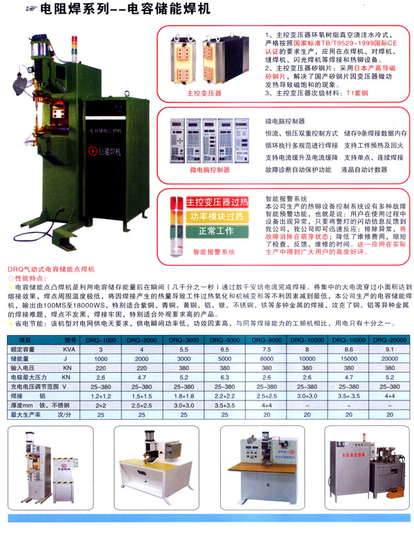 中國(guó)★常州市巨能自動(dòng)化設(shè)備制造有限公司是專業(yè)生產(chǎn)各種焊割設(shè)備和紡織后整理設(shè)備及液壓設(shè)備的企業(yè),致力自動(dòng)化設(shè)備的工藝研究和生產(chǎn)制造已二十余年,擁有專業(yè)的科技研發(fā)團(tuán)隊(duì)和成套精密的機(jī)械加工設(shè)備,從每一個(gè)零配件加工到整體設(shè)備組裝調(diào)試,都有專業(yè)的技術(shù)人員和質(zhì)量保證體系。 焊割主要產(chǎn)品有:點(diǎn)焊機(jī)系列、縫焊機(jī)系列、環(huán)縫焊接機(jī)床、凸焊機(jī)、排焊機(jī)、儲(chǔ)能焊機(jī)、對(duì)焊機(jī)、龍門焊機(jī)、太陽(yáng)能焊接設(shè)備和機(jī)器人焊接系統(tǒng)及外圍設(shè)備等;并為用戶設(shè)計(jì)制造專用焊接設(shè)備。 紡織后整理設(shè)備主要有:剪毛機(jī)、刷花機(jī)、滴塑機(jī)等;并為用戶設(shè)計(jì)制造專用紡織后整理設(shè)備。 液壓設(shè)備主要有:油壓機(jī)、平板硫化機(jī)等;并為用戶設(shè)計(jì)制造專用液壓設(shè)備。 本公司集咨詢、開(kāi)發(fā)、研制、生產(chǎn)、銷售、服務(wù)于一體。多年來(lái),產(chǎn)品質(zhì)量,售后服務(wù)得到廣大用戶好評(píng)。 客戶的要求是企業(yè)的奮斗目標(biāo),竭誠(chéng)為用戶做好售前、售后服務(wù)是我們的服務(wù)宗旨!