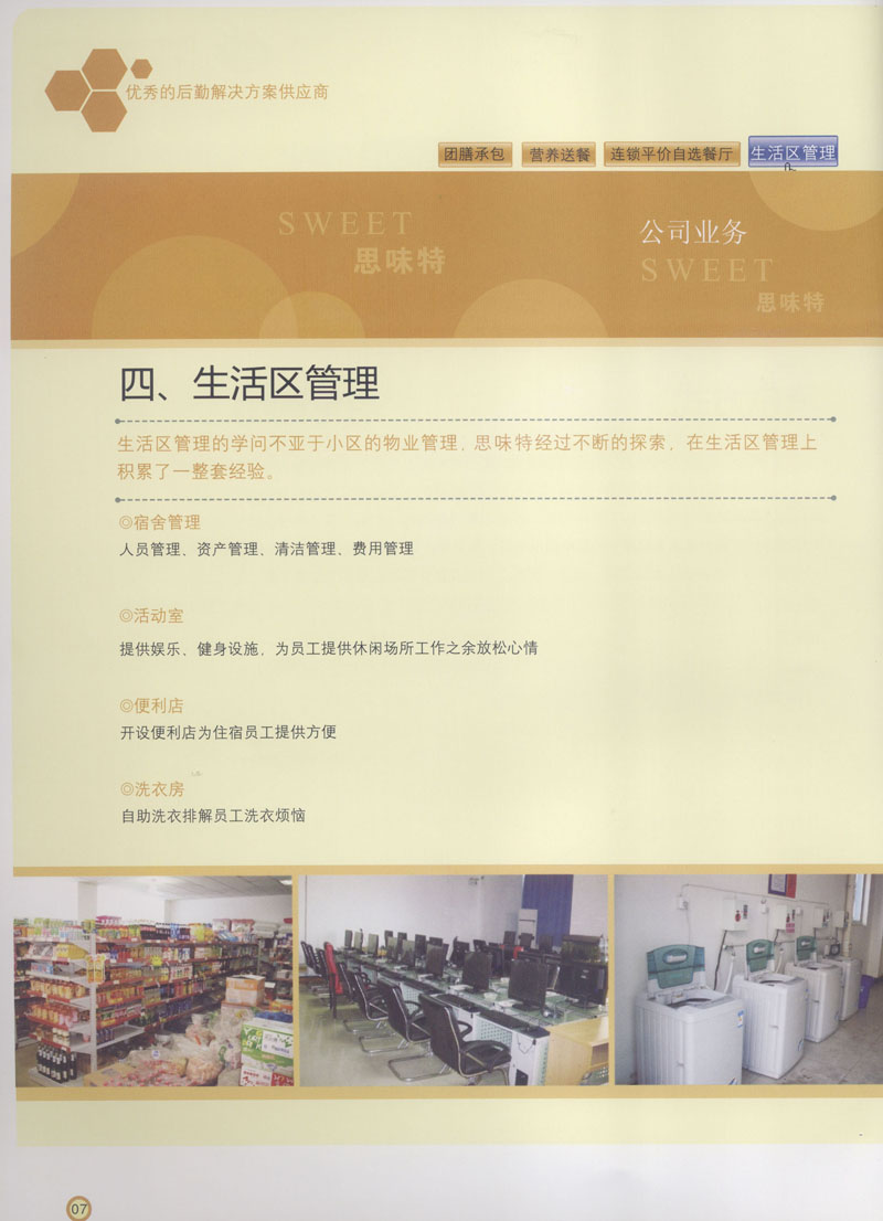 常州市思味特餐飲有限公司是一家專業(yè)從事企事業(yè)后勤服務的有限責任公司,公司從承包食堂起步,逐漸發(fā)展為經營團膳承包、營養(yǎng)送餐、生活區(qū)管理、連鎖餐廳的綜合型企業(yè)。2008年公司斥資100萬元,在常州興建了可以同時提供3000餐膳食的中央廚房,重點打造“和美客”后勤服務品牌,全力為企事業(yè)單位解決后勤后顧之憂。 到目前為止,我們合作成功的企事業(yè)單位超過50多家,服務人數(shù)突破15萬,合作單位包括國家機關、國有企業(yè)、三資企業(yè)、民營企業(yè)、學校、醫(yī)院等,其中不乏國際知名品牌公司。 和美客愿為更多的國內外企事業(yè)單位及機關團體分憂解難,從廚房設計、菜品配送、團膳承包、到生活區(qū)管理等提供全方位的服務。