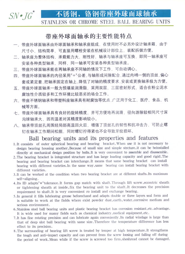 常州市武進(jìn)蘇南軸承有限公司是生產(chǎn)鋼球及帶座外球面軸承的專業(yè)工廠,主要生產(chǎn)蘇南牌“SN”不銹鋼球、鉻鋼鋼球,以及不銹鋼、鉻鋼UC、UCX、UK、HC、SB、SA、SER、UOOO、KOOO及其它非標(biāo)系列各類帶座外球面軸承、偏心套、緊定套等產(chǎn)品。本廠生產(chǎn)規(guī)格有軸承鋼球0.5-150m/m,碳鋼球0.5-150m/m,不銹鋼球0.8-50m/m,同時(shí)定做各種特殊規(guī)格的不銹鋼球、銅球、陶瓷球等。為廣大用戶提供品質(zhì)優(yōu)良,規(guī)格齊全,價(jià)格合理的各種鋼球。 本公司位于常州南部,錫宜高速公路串境而過, 交通便利。南瀕風(fēng)景秀麗的太湖,沿湖丘陵地帶人文景觀豐富,為常州市武進(jìn)區(qū)太湖旅游度假區(qū) 。本廠環(huán)境優(yōu)美,具有良好的生產(chǎn)環(huán)境,我們竭誠歡迎國(guó)內(nèi)外的朋友進(jìn)行廣泛多樣的經(jīng)濟(jì)合作交往和貿(mào)易合作,并為你提供優(yōu)良的服務(wù)。 本公司技術(shù)力量雄厚,工藝裝備先進(jìn),檢測(cè)手段完備,產(chǎn)品質(zhì)量穩(wěn)定,使用性能各項(xiàng)指標(biāo)都達(dá)到國(guó)際先進(jìn)水平,產(chǎn)品主要銷往美國(guó)、法國(guó)、德國(guó)、日本、意大利、澳大利亞、韓國(guó)、加拿大、及東南亞等國(guó)家和地區(qū)。本公司的“SN”商標(biāo)鋼球及帶座外球面軸承已贏得國(guó)內(nèi)外廣大用戶的信賴。 本公司具有外貿(mào)自營(yíng)出口權(quán),并于2002年9月通過ISO9001-2000版質(zhì)量體系認(rèn)證,于2004年8月通過“CQC”產(chǎn)品質(zhì)量認(rèn)證。