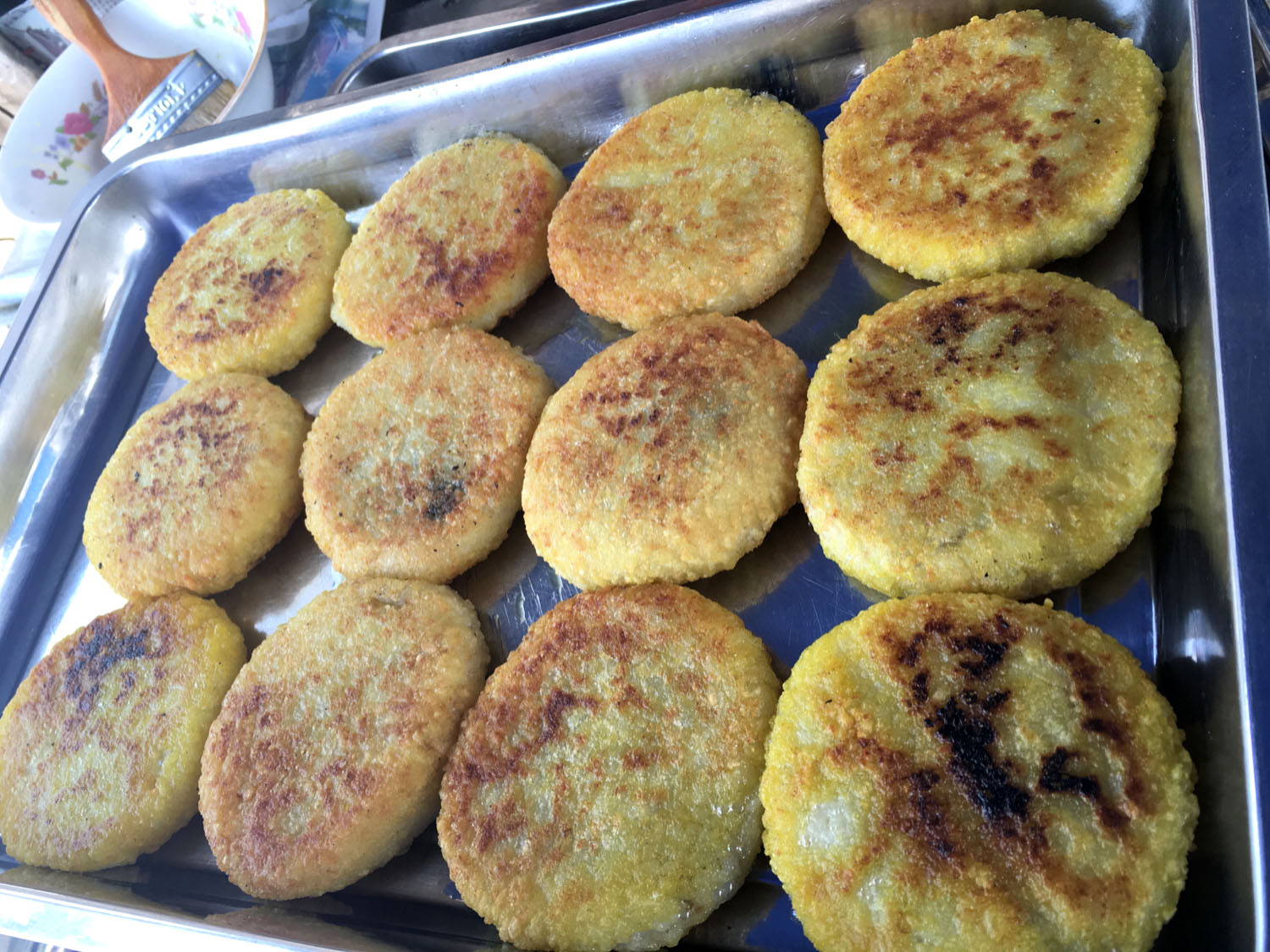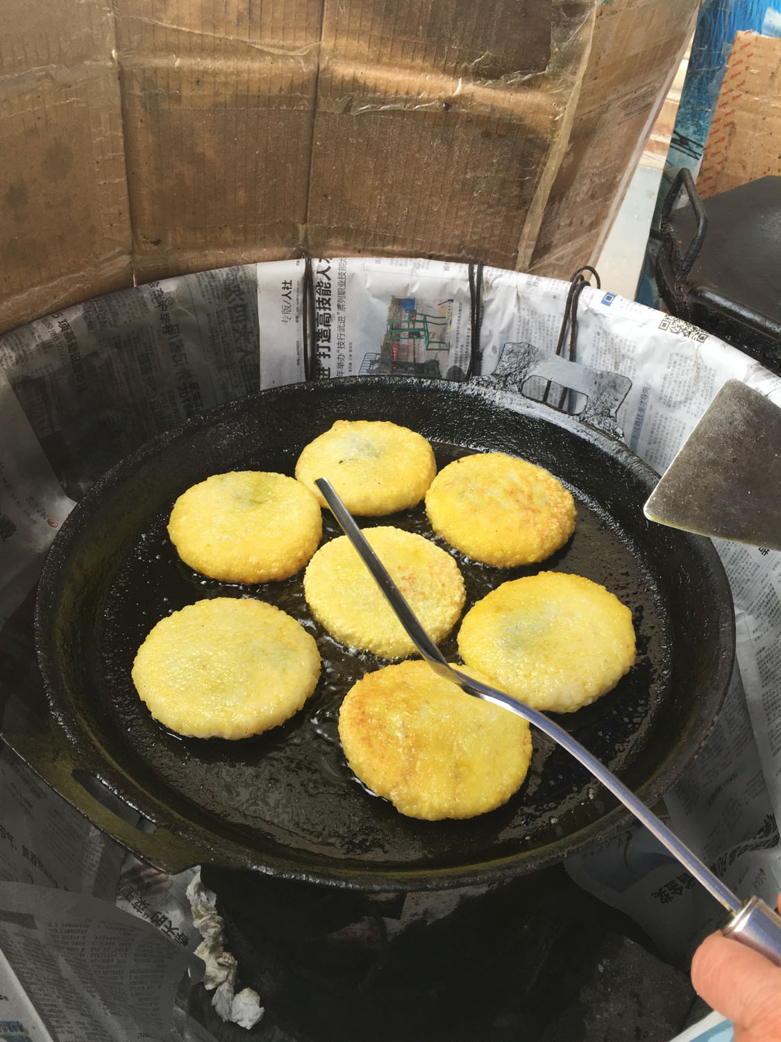 魁元面館,橫山橋江南路,沿街的店鋪。老板娘徐文霞,從公婆手里接過這個店面已有20多年。最具特色的菜品是肉圓跟大排。每天凌晨3點就要起來做準備,菜都是現(xiàn)燒現(xiàn)賣。 特色小菜: 肉圓:有人特意遠道而來打包走 大排面:每天能賣出100來塊大排 大腸 雞蛋:每天煎的雞蛋就差不多300來個 小餛飩、大餛飩 限時供應(yīng): 咸鴨蛋、肉粽、蛋黃粽:每天都要包,放爐子燒,在端午前后供應(yīng),很好吃。每天都有人打包幾個咸鴨蛋或者粽子拿回家,送人 油酥餅(圖3-4)、糍團餅(圖5-6)、韭菜餅(圖7-8) 油酥餅每天晚上做,涼了更好吃,更酥更脆,里面都是很香的黑芝麻;糍團餅,每天中午擺攤熱了煎鍋開始煎,糯米做成,用菜籽油煎至金黃,餡兒是黑芝麻瓜子仁;韭菜餅是最受歡迎的,每天都有好多人排隊來買。供應(yīng)時間:每年的4月份到11月份 下午1點到5點半。