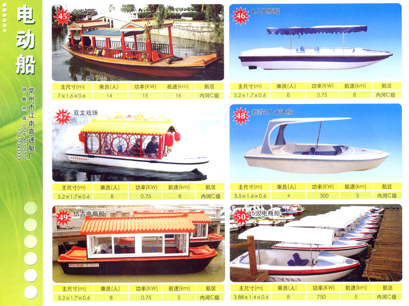 隨著人民生活的提高和水上旅游業(yè)的不斷發(fā)展,原有的游艇已遠不能滿足人民群眾不斷提高的需求。為適應(yīng)水上旅游業(yè)市場的變 化,我廠開發(fā)研制了符合中國國情、具有民族特色的仿古畫舫游艇及國際最新流行款式一城市旅游休閑觀光艇。特別近兩年又開發(fā)了一批精品畫舫船投放市場之后深受景區(qū)的歡迎。今年我廠又開發(fā)了適用少數(shù)民族的“風(fēng)雨橋”、“寨門”畫舫艇。在湖南、廣西、云南、貴州深受愛戴。此艇別具風(fēng)格,民族風(fēng)情特別濃厚。侗鄉(xiāng)一號計劃在2006年5月1日投放在貴州黎平侗鄉(xiāng)風(fēng)景區(qū)八舟河景區(qū)使有(風(fēng)序號)。我廠歡迎用戶來圖加工,來廠考察訂貨,畫舫艇款式多多,終有一款適合你。歡迎來電來函垂詢。索樣即寄。誠心銷售、人情化服務(wù)、企業(yè)文化、精品畫舫。