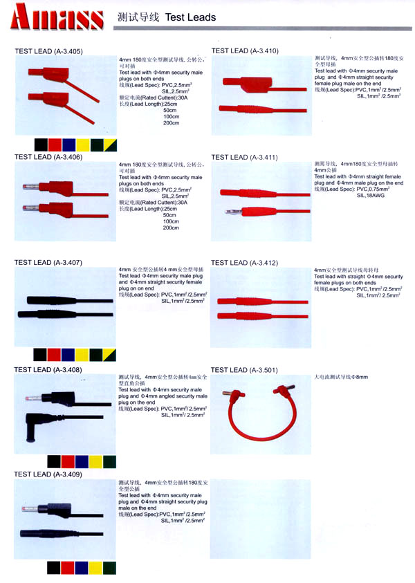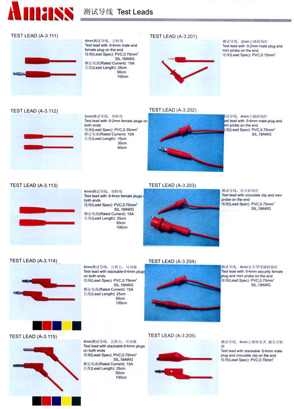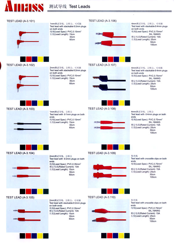 本公司專(zhuān)業(yè)生產(chǎn)各類(lèi)香蕉插頭,香蕉插座,接線柱,電瓶夾,鱷魚(yú)夾,測(cè)試導(dǎo)線,測(cè)試筆等。產(chǎn)品分2mm/2.5mm/3mm/3.5mm/4mm五大系列,百余種款式, 各種香蕉插廣泛用于儀器、儀表、電力測(cè)試、教學(xué)、玩具,視聽(tīng)設(shè)備、醫(yī)療儀器,保健產(chǎn)品等領(lǐng)域。公司技術(shù)力量雄厚,生產(chǎn)工藝先進(jìn),產(chǎn)品遠(yuǎn)銷(xiāo)港、臺(tái)、歐美,并與飛利浦等國(guó)際品牌配套。公司本著精益求精的理念,歡迎新老客戶光臨。 我們擁有資深的工程師和豐富的電子產(chǎn)品銷(xiāo)售經(jīng)驗(yàn),專(zhuān)業(yè)生產(chǎn)各類(lèi)電子接插件產(chǎn)品。 香蕉插頭,香蕉插座,電瓶夾,鱷魚(yú)夾等品種齊全、 質(zhì)量可靠,致力服務(wù)于通訊、數(shù)據(jù)通信、消費(fèi)類(lèi)電子產(chǎn)品、計(jì)算機(jī)和計(jì)算機(jī)外圍設(shè)備以及工業(yè)應(yīng)用等領(lǐng)域,能給客戶提供全面采購(gòu)解決方案。 我們秉承穩(wěn)健作風(fēng)、誠(chéng)實(shí)經(jīng)營(yíng)、合理價(jià)格、完善服務(wù)的宗旨,在全體客戶的支持下,公司不斷創(chuàng)新進(jìn)取,業(yè)績(jī)蒸蒸日上,已與數(shù)十家電子零件制造商及其分支機(jī)構(gòu)建立密切合作關(guān)系,在國(guó)內(nèi)擁有數(shù)百家固定客戶。