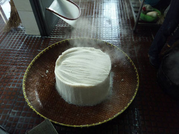 第一步:蒸糯米飯,老徐先用煤爐將水燒開(kāi),再將洗凈泡好的糯米放入一只大木桶中,放在爐子上蒸。除此以外,老徐還要不斷攪拌,保證糯米受熱均勻,直至散發(fā)出水蒸氣。為了保證米飯溫度,老徐特地用塑料薄膜將木桶封住,并用皮筋加固。蒸糯米飯,大約需要半個(gè)多小時(shí)。
