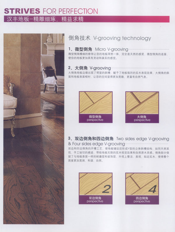 常州漢豐裝飾材料有限公司是一家涉及強(qiáng)化地板制造、屏風(fēng)鋁材生產(chǎn)、進(jìn)出口貿(mào)易的大型公司。2001年公司投入重資.全面引進(jìn)世界頂級一體化自動(dòng)流水生產(chǎn)線和具有國際先進(jìn)水準(zhǔn)的德國權(quán)威木地板生產(chǎn)技術(shù),興建強(qiáng)化地板生產(chǎn)基地。多年以來.一直不斷加強(qiáng)生產(chǎn)設(shè)備、廠房基礎(chǔ)投入,目前公司年生產(chǎn)強(qiáng)化地板能力已經(jīng)達(dá)到了500萬平方米,步入國內(nèi)一流行列,具備了雄厚的國際競爭力。 漢豐地板以奉獻(xiàn)生活中最完美的地板為發(fā)展目標(biāo),時(shí)尚流行的設(shè)計(jì)風(fēng)格和多樣化的產(chǎn)品類型,贏得了市場的廣泛贊譽(yù)和肯定。產(chǎn)品嚴(yán)格按照歐洲標(biāo)準(zhǔn)檢測強(qiáng)化木地板的各項(xiàng)性能指標(biāo).達(dá)到百分百的國際技術(shù)標(biāo)準(zhǔn),確保了每一塊地板都有著上乘品質(zhì),是綠色環(huán)保的好地板。并先后通過了Isc)9001國際質(zhì)量管理體系認(rèn)證,IS014001國際環(huán)境管理體系認(rèn)證.中國環(huán)境標(biāo)志產(chǎn)品認(rèn)證,深得用戶的一致好評,是寫字樓、商場、大型超市、學(xué)校、建筑樓宇、娛樂場所、家用私宅等鋪裝的首選地板。