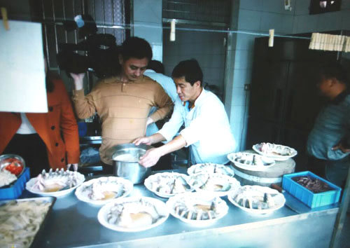 張萬成羊莊一家綜合性的公司,下設(shè)酒店,羊產(chǎn)品加工廠,屠宰廠,山羊養(yǎng)殖場(chǎng)。 酒店位于常州西夏墅浦河村,酒店羊宴規(guī)模占地30畝,酒店主要經(jīng)營(yíng)特色全羊宴。 一個(gè)祖?zhèn)鞯臍⒀虼髴,傳到張萬成,已是第六代了。張家的羊肉,素來以肉質(zhì)鮮美著稱,張萬成羊莊的主人張建龍是第六代傳人,張家的羊肉素來以肉質(zhì)鮮美著稱,從常州新北區(qū)沿黃河西路往機(jī)場(chǎng)方向直行至羅溪右轉(zhuǎn),穿過滬寧高速高架橋后不遠(yuǎn)處左拐沿翠屏湖路直走便能看到張萬成羊莊,酒店上下共有三層,2000多平方米經(jīng)營(yíng)面積,能同時(shí)接待近30桌客人的規(guī)模。有自己的羊圈和屠宰場(chǎng),每天殺20多只,菜式近100道。光是原料,就從原來羊身上的幾個(gè)主要部位,增加到除了羊牙齒以外的一只整羊全部可以入菜。烹制方式,更是在本土單一的燒、炒、煮基礎(chǔ)上,借鑒了東北、廣東、四川等地的烹羊特色,增加了蒸、涮、烤、煎、炸等多種方式。 注重原汁原味的冷菜 白切羊肉:精選羊頸部的活肉精制而成,肥瘦適中,絲毫沒有一般羊肉的膻味,沾少許張萬成羊莊秘制的醬料,口感非常好。 美味羊舌:張家的羊舌感覺是用特殊的醬料腌制過的,咸中略有甜味,口感鮮嫩卻肥而不膩,味道很香。 除了白切羊肉和羊舌以外還有許多冷菜品種,如羊肚、羊心、羊耳朵等。。 火候控制精準(zhǔn)的炒菜 炒羊肝:地道的農(nóng)家風(fēng)味,與大蒜葉同炒,蒜香濃郁,羊肝鮮嫩,這羊肝可是火候菜,羊肝鮮嫩與否不但取決于廚師對(duì)火候的掌握,還在于上桌放置時(shí)間的長(zhǎng)短,所以羊肝上桌后要盡快食用,看羊肝是否鮮嫩,只需用筷子挑起并輕輕抖動(dòng),有彈性者為佳。 美味羊?qū)殻阂跃曼S、鮑味菇爆炒的羊?qū),說是滋補(bǔ)壯陽的一道金貴菜,配料講究的燒菜系列 宮廷燴羊肚:較為金貴的菜品,配菜貴于主料,是以名貴的素鮑和新鮮的筍絲與羊肚同煮,口感濃郁,營(yíng)養(yǎng)豐富。 海參白燒羊肉:將取自7個(gè)月大羔羊身上的帶皮腿肉與海參一同煨煮,菜肴美容滋補(bǔ),兩種鮮味互相補(bǔ)益達(dá)到完美交融狀態(tài),口感甚佳。 魚羊鮮:新鮮的青魚配上羊肉,既有本地羊肉的肥嫩,又有魚肉的鮮香,鮮!鮮!古代人造字就是有道理!”店里可以根據(jù)客人的需要配以魚回魚、鯰魚、鱖魚等。 特色的羊宴點(diǎn)心 羊肉餛飩:羊莊老板自創(chuàng)的羊宴點(diǎn)心,看似普通的油燜跑蛋卻另有乾坤,將蛋掀開便能看見藏于其中的羊肉菜餡餛飩,菜和肉都是自家新鮮的原料,很好吃。 手工搟面:不知道是因?yàn)槊媸钦嬲檬止{制還是因?yàn)榧尤肓缩r味十足的羊湯,總之味道非常好,面勁道,湯也鮮美! 張萬成羊莊的羊湯也是遠(yuǎn)近聞名,因?yàn)槭亲鎮(zhèn)鞯氖炙嚕龀鰜淼难驕恍炔浑,香醇不膩,味道十分鮮美,加入粉絲或者面條更是難得的美味。