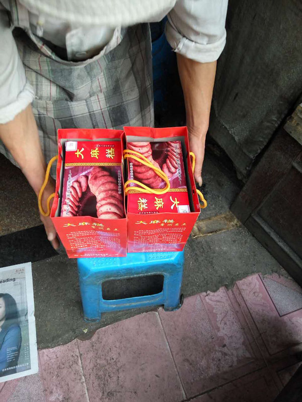 常州人夏亞寶的大麻糕技術(shù)是上世紀(jì)80年代更著新橋麻糕店的師傅周金生學(xué)的,1999年開店至今,在附近一帶做得小有名氣,向?qū)W校供應(yīng)麻糕,整整6年。 “做大麻糕太辛苦,半夜爬起來準(zhǔn)備熱爐子、和面、做餡,年輕人吃不了這苦,15年我都沒請人,和老婆一起打過來的!毕膩唽氈钢直凵系臓C傷的痕跡說,能堅持烤桶制作大麻糕的真心不多了。夏亞寶的烤桶是自制的,爐心常州買不到,他托人從無錫買來,15年前85元一個,前年漲到150元。“烤桶的爐心其實就是以前船上人家用的行爐”,去底后鑿個洞,然后外面加上隔熱材料,最后貼上鐵片”。 15年,這已經(jīng)是第三只貼桶了。