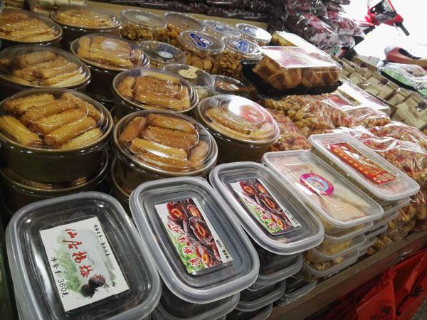 湖塘花東街上的“石頭炒貨店”是20多年的老字號(hào)了。上個(gè)世紀(jì)90年代,二十郎當(dāng)歲的“石頭”一一石愛(ài)軍從徐州來(lái)到武進(jìn),就在這條街上擺了個(gè)炒貨攤。“幾平方米的小地?cái),邊上架個(gè)大鐵鍋,炒出的瓜子、花生、蠶豆,鋪在竹篾上篩過(guò)、冷卻后就可以賣(mài)了!笔瘣(ài)軍回憶,街坊鄰里冒著冬日的嚴(yán)寒,擠在地?cái)偳皣L著剛出鍋的瓜子的場(chǎng)景,還歷歷在目。20多年過(guò)去了,鄰居們都成了最熟悉的親人,從年輕姑娘到抱著孫子的老人,大家還是最?lèi)?ài)吃石頭炒的瓜子。而炒貨店的店面也擴(kuò)大了,并且在湖塘另開(kāi)了多家分店。 生意最好的還是花東街上的老店。不大的店面,被一袋袋瓜子、花生、蠶豆、核桃堆得滿(mǎn)滿(mǎn)的,空氣里也滿(mǎn)滿(mǎn)都是堅(jiān)果的香氣。超大瓜子唇齒留香,去皮瓜子鮮香入昧,南瓜子皮薄肉厚,還有開(kāi)心果、手剝松子、小油果、核桃、碧根果、小黃豆,以及炒米糕、蛋卷、麻松條、紫薯干、地瓜干、山芋片、鍋巴、芝麻糖、山楂、麻花、葡萄干….這么多美昧都是老板親手制作。愛(ài)吃點(diǎn)什么,就用一 長(zhǎng)柄勺鏟點(diǎn)兒什么,最質(zhì)樸簡(jiǎn)單的包裝袋里,裝著的是屬于這條老街居民記憶里的味道,穿過(guò)幾十年的時(shí)光,仍然鮮活生動(dòng)地銘刻在每一個(gè)人的里。 “少東家”石榮沖就是在這個(gè)老店、這條老街長(zhǎng)大的。他說(shuō)目前自己炒瓜子的技藝還沒(méi)到火候,還在跟著父親學(xué)習(xí)的階段!碧暨x原料、炒制工序,每一步都有學(xué)問(wèn)在里頭!蹦玫陜(nèi)的銷(xiāo)售冠軍“內(nèi)蒙大瓜子”來(lái)說(shuō),這種來(lái)自?xún)?nèi)蒙、經(jīng)過(guò)充足日照的葵花子每顆長(zhǎng)度近2厘米,個(gè)頭特別大,也十分飽滿(mǎn)。拈一顆大瓜子,就連嗑起來(lái)的聲音也分外清脆。外皮很容易與內(nèi)仁剝離,碩大的瓜子仁口感十分香脆,與別家作料用得很足、吃起來(lái)特別鮮咸的瓜子不同,這種大瓜子更注重烘托原昧,淡淡的咸昧在舌尖掠過(guò),剩余的都是屬于瓜子的天然香甜。