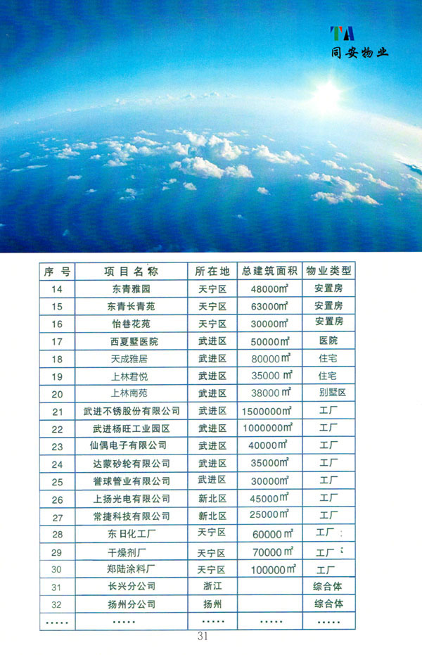 公司發(fā)展至今,員工總數(shù)近千余人,大專(zhuān)以上學(xué)歷200多人,中高級(jí)技術(shù)人員160人,維修人員140人,物業(yè)管理師80名,公司接管面積達(dá)3100000多平方米,設(shè)涉及住宅小區(qū),別墅,大型游樂(lè)場(chǎng),公園,醫(yī)院,廠區(qū),商業(yè)等。公司的工作管理逐步導(dǎo)入ISO9001質(zhì)量體系和ISO4001環(huán)境管理體系和GB/T28001職業(yè)健康安全管理體系,嚴(yán)格按照質(zhì)量體系的標(biāo)準(zhǔn)執(zhí)行。