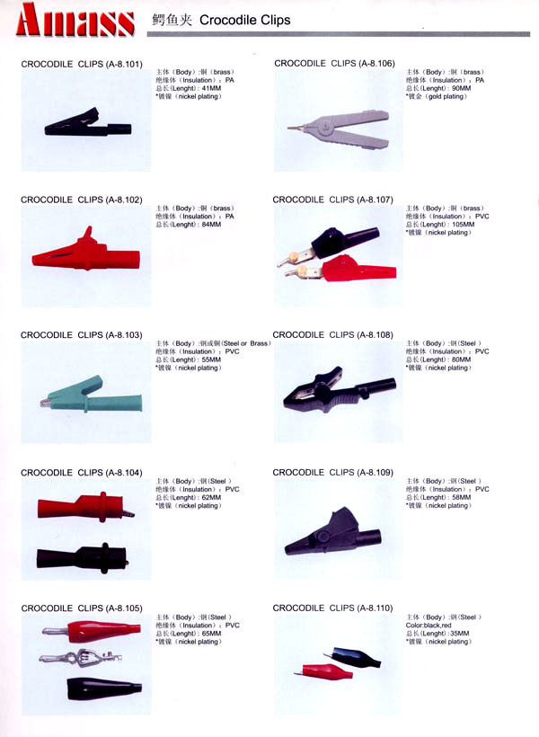 本公司專業(yè)生產(chǎn)各類香蕉插頭,香蕉插座,接線柱,電瓶夾,鱷魚夾,測(cè)試導(dǎo)線,測(cè)試筆等。產(chǎn)品分2mm/2.5mm/3mm/3.5mm/4mm五大系列,百余種款式, 各種香蕉插廣泛用于儀器、儀表、電力測(cè)試、教學(xué)、玩具,視聽設(shè)備、醫(yī)療儀器,保健產(chǎn)品等領(lǐng)域。公司技術(shù)力量雄厚,生產(chǎn)工藝先進(jìn),產(chǎn)品遠(yuǎn)銷港、臺(tái)、歐美,并與飛利浦等國(guó)際品牌配套。公司本著精益求精的理念,歡迎新老客戶光臨。 我們擁有資深的工程師和豐富的電子產(chǎn)品銷售經(jīng)驗(yàn),專業(yè)生產(chǎn)各類電子接插件產(chǎn)品。 香蕉插頭,香蕉插座,電瓶夾,鱷魚夾等品種齊全、 質(zhì)量可靠,致力服務(wù)于通訊、數(shù)據(jù)通信、消費(fèi)類電子產(chǎn)品、計(jì)算機(jī)和計(jì)算機(jī)外圍設(shè)備以及工業(yè)應(yīng)用等領(lǐng)域,能給客戶提供全面采購解決方案。 我們秉承穩(wěn)健作風(fēng)、誠(chéng)實(shí)經(jīng)營(yíng)、合理價(jià)格、完善服務(wù)的宗旨,在全體客戶的支持下,公司不斷創(chuàng)新進(jìn)取,業(yè)績(jī)蒸蒸日上,已與數(shù)十家電子零件制造商及其分支機(jī)構(gòu)建立密切合作關(guān)系,在國(guó)內(nèi)擁有數(shù)百家固定客戶。