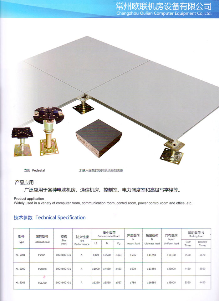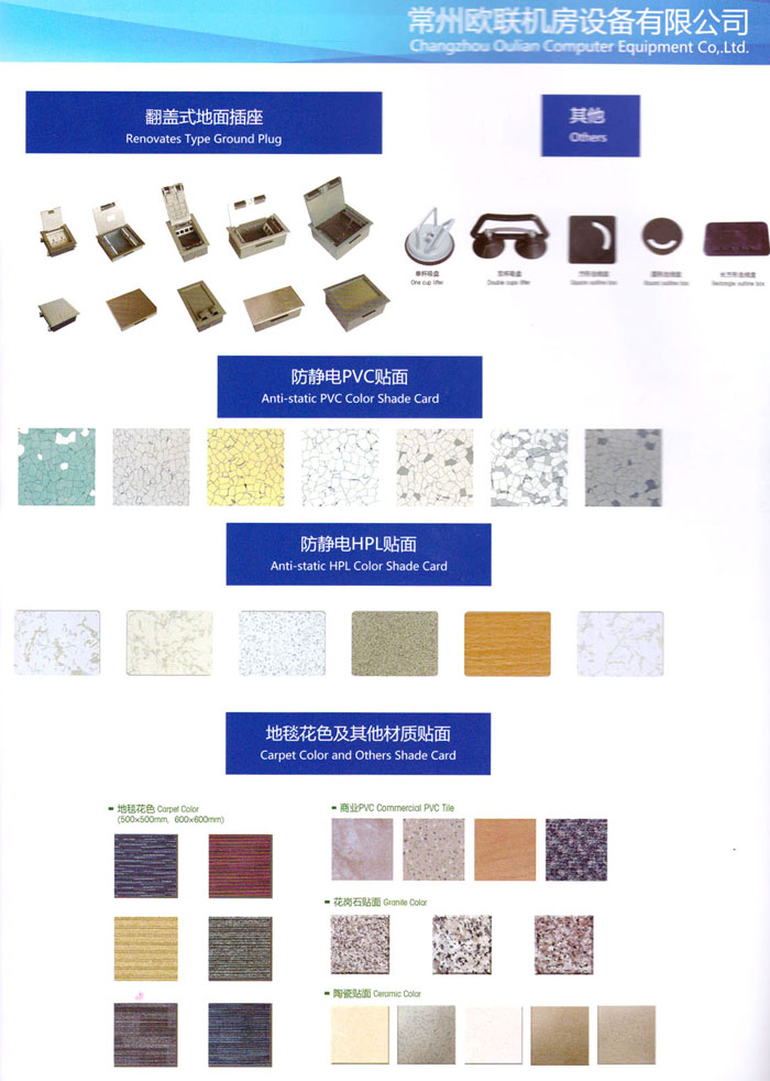 防靜電高架活動地板、全鋼地板、陶瓷地板是計算機(jī)行業(yè)發(fā)展起來的新型鋪地材料,隔離了潮氣、靜電灰塵,最重要的是解決了綜合布線問題,無需預(yù)埋管線,可隨時拆卸、搬移,保證了資訊設(shè)備完整的優(yōu)點(diǎn),適應(yīng)了智能化樓宇中信息自動化技術(shù)對所處環(huán)境的特定要求,避免了廣大客戶的雙重投資,使現(xiàn)代化辦公程度更加高效,辦公場所更加舒適。 “歐聯(lián)”系列全鋼地板,符合國家安全要求,種類完備多樣,其中防靜電陶瓷地板、硫酸鈣地板等除具有普通瓷質(zhì)的裝飾和實(shí)用性外,其耐磨、防水、防火功能優(yōu)于其它同類產(chǎn)品,防靜電系列地板,能切合不同客戶的要求,其靈活的配置,深受客戶歡迎,不同材質(zhì)的地板結(jié)構(gòu)使設(shè)計師的設(shè)計空間比傳統(tǒng)的更加廣闊自由和善變。 公司大力發(fā)展國內(nèi)外銷售業(yè)務(wù),多次中標(biāo)國內(nèi)重點(diǎn)工程 ,例:哈爾濱醫(yī)科大學(xué)、山東大學(xué)、上海普通機(jī)場等。 公司將一如既往開發(fā)和制造一流的產(chǎn)品,愿與廣大有識之士合作發(fā)展,共創(chuàng)美好未來。