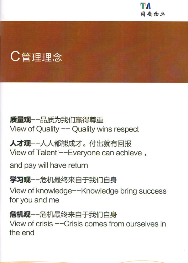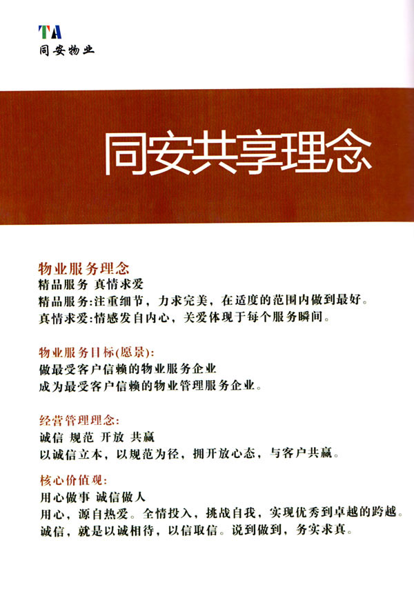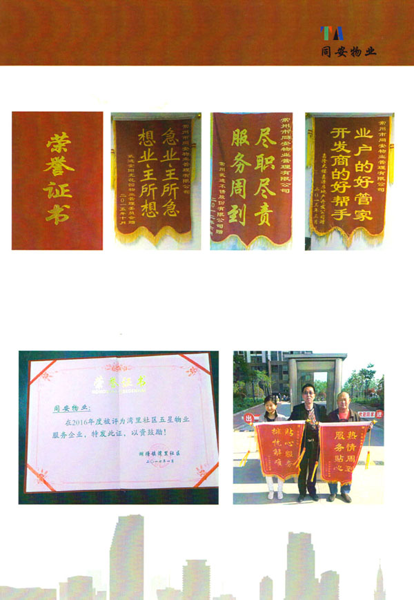常州市同安物業(yè)管理有限公司注冊(cè)1999年,發(fā)展至今已有多年歷史,本公司坐落于美麗的龍城常州,秉承“融聚無(wú)限未來(lái)”的核心理念,融專(zhuān)業(yè)認(rèn)才,匯優(yōu)質(zhì)資源以”專(zhuān)心,細(xì)心,耐心”的服務(wù)態(tài)度,為客戶(hù)打造“安心,順心,稱(chēng)心”的服務(wù)感受。 公司始終以“打造中國(guó)最值得信賴(lài)和最值得尊重的物業(yè)管理服務(wù)集成商”為愿景自我鞭策,不斷前行。同安物業(yè)以客戶(hù)滿(mǎn)意為終極目標(biāo),不斷加強(qiáng)”崗位資格認(rèn)證能力,人才招聘與職業(yè)化培訓(xùn)能力,產(chǎn)品策劃與管理設(shè)計(jì)能力,品質(zhì)監(jiān)督與管控能力,技術(shù)更新與運(yùn)營(yíng)優(yōu)化力“五大專(zhuān)業(yè)能力的培養(yǎng)和提升,實(shí)現(xiàn)“精品化管理,專(zhuān)業(yè)化服務(wù)”。 公司發(fā)展至今,員工總數(shù)近千余人,大專(zhuān)以上學(xué)歷200多人,中高級(jí)技術(shù)人員160人,維修人員140人,物業(yè)管理師80名,公司接管面積達(dá)3100000多平方米,設(shè)涉及住宅小區(qū),別墅,大型游樂(lè)場(chǎng),公園,醫(yī)院,廠區(qū),商業(yè)等。公司的工作管理逐步導(dǎo)入ISO9001質(zhì)量體系和ISO4001環(huán)境管理體系和GB/T28001職業(yè)健康安全管理體系,嚴(yán)格按照質(zhì)量體系的標(biāo)準(zhǔn)執(zhí)行。