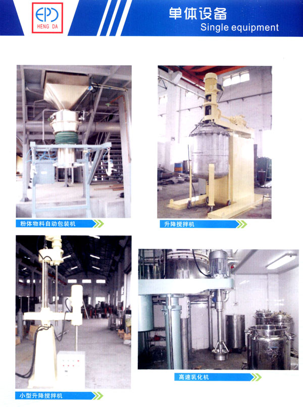 恒大公司掌握膠粘劑、樹脂、涂料和油墨等精細化工核心工藝技術,擁有強大的化工成套生產(chǎn)設備提供能力和設備制造能力,能夠為客戶提供從整廠規(guī)劃設計、生產(chǎn)工藝流程設計、設備選型制造、管道設計安裝、自動化控制系統(tǒng)開發(fā)調試以及整廠總承包交鑰匙工程服務。